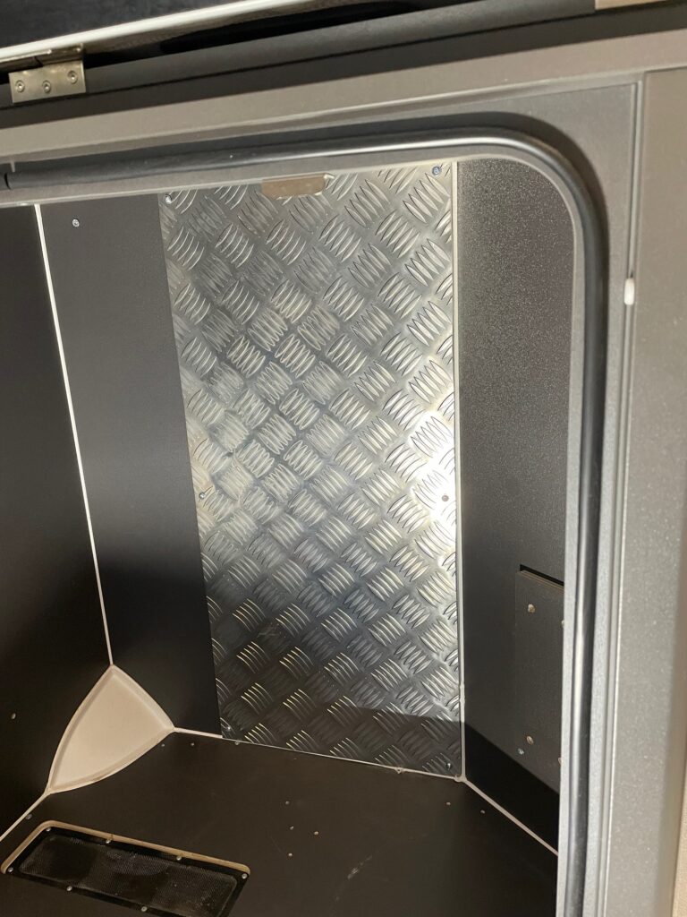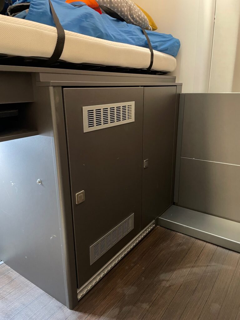 It is also possible to retain the original gas locker as a cupboard, and install the power system in the cupboard opposite. This is personal preference.