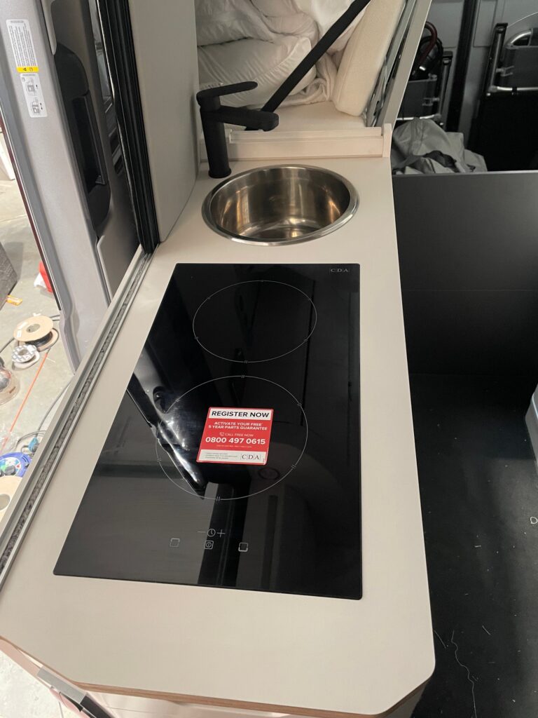If your VW Grand California is fitted with a diesel Truma Combi, the only gas appliance is the 2 burner hob. We carried out a power management install to allow the Grand California to work off grid, and replaced the counter top so an induction hob and a new sink could be installed