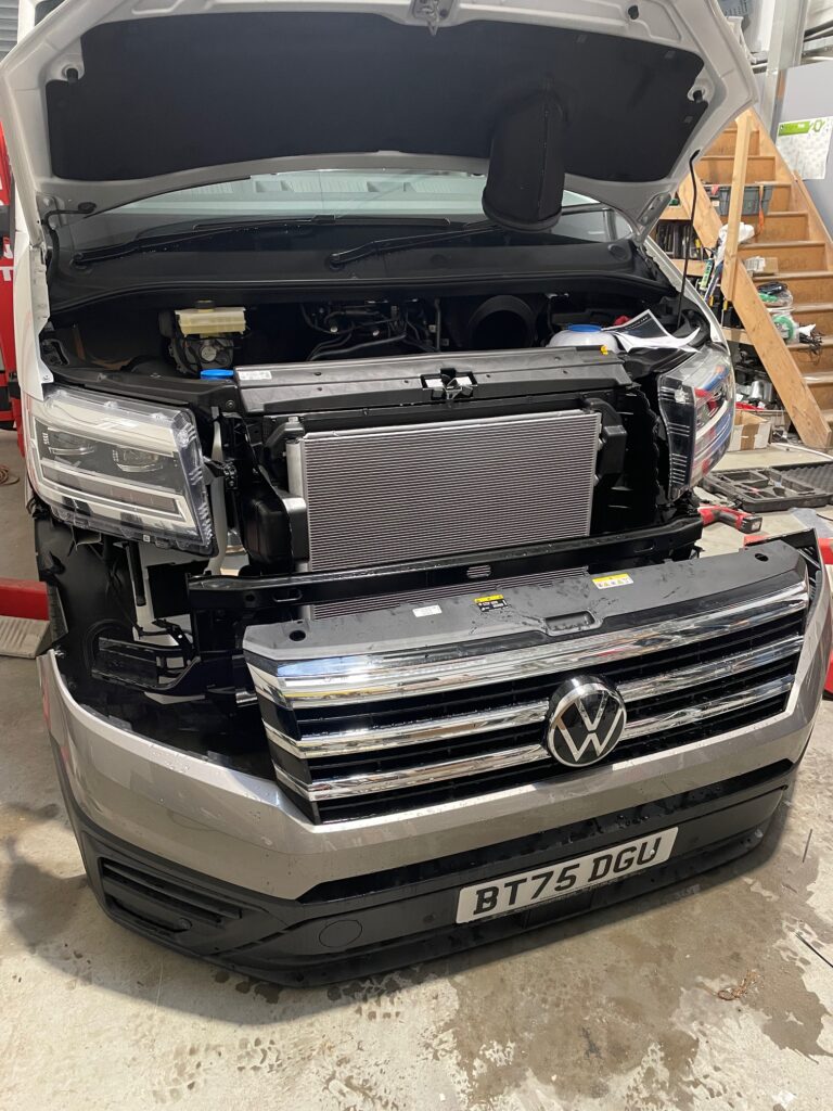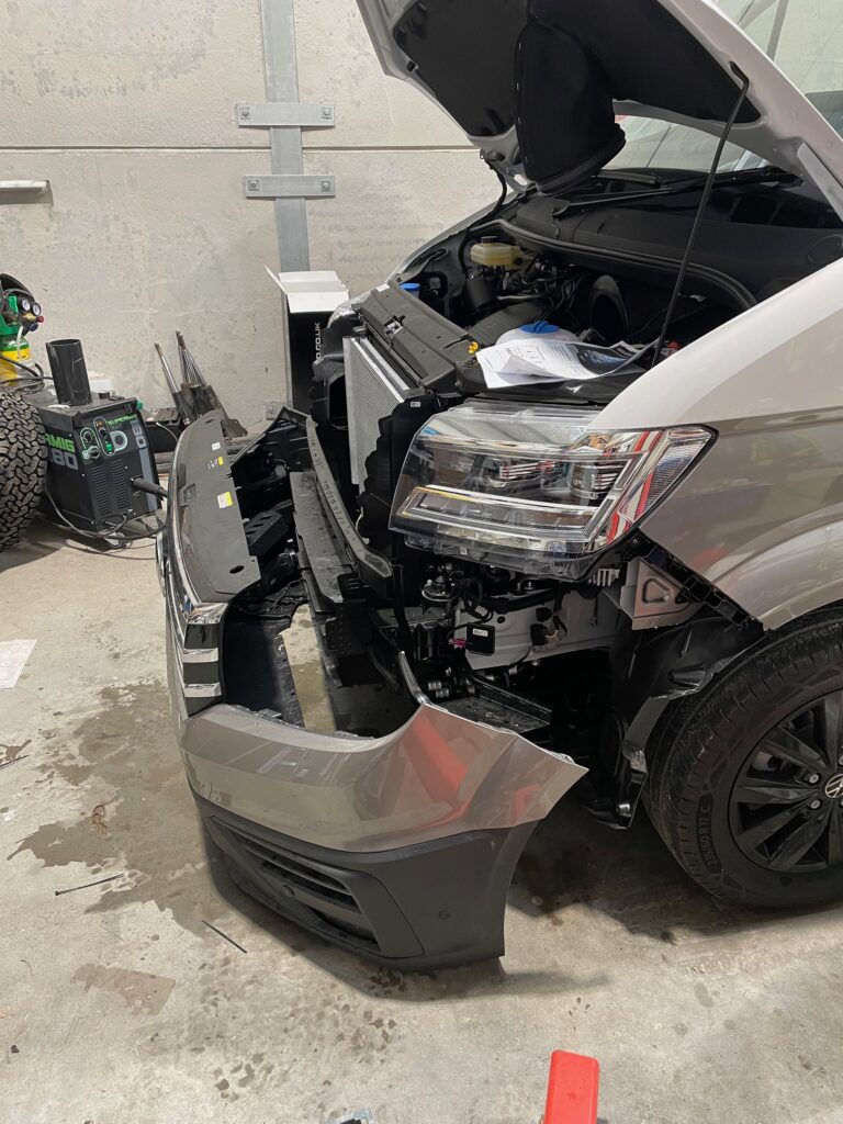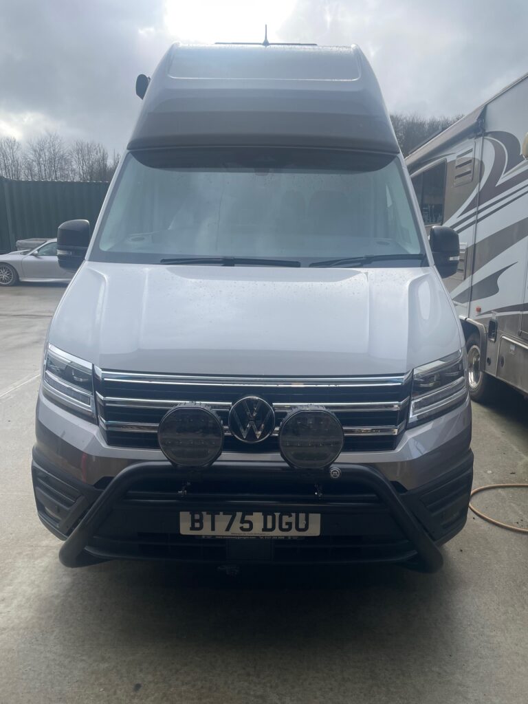 We installed a nudge bar with 9” spot lights, these lights had a canbus connection into the vans wiring loom so the full beam was activated with the vans original headlights.